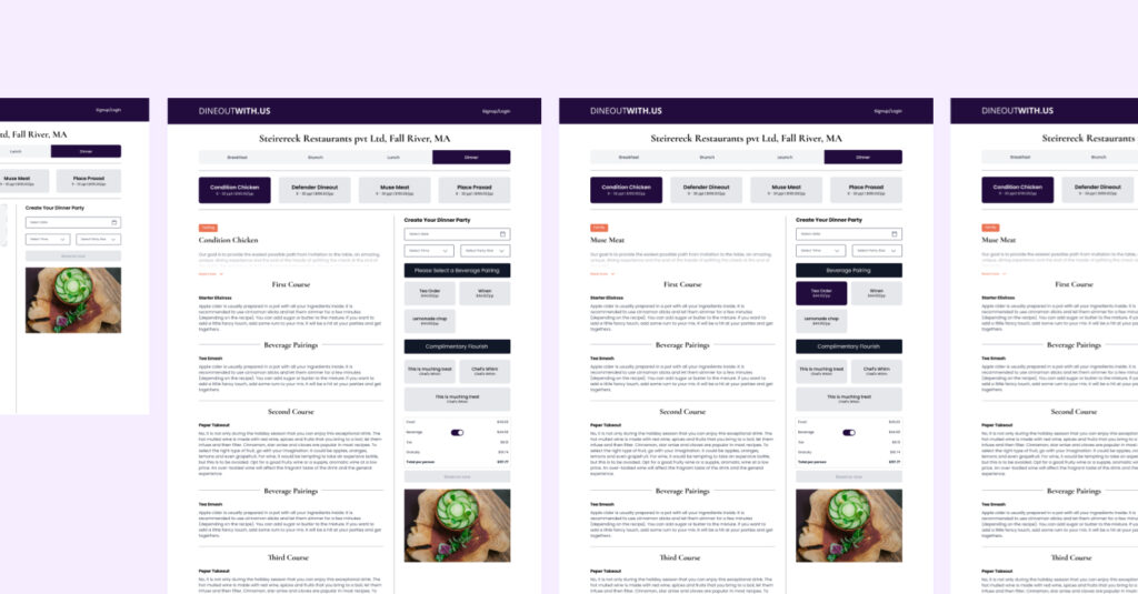 Collaborative discussions were focused on bridging design and technology, showcasing how design enhancements aligned with dineoutwith.us’s strategic vision while complementing the existing technology stack.