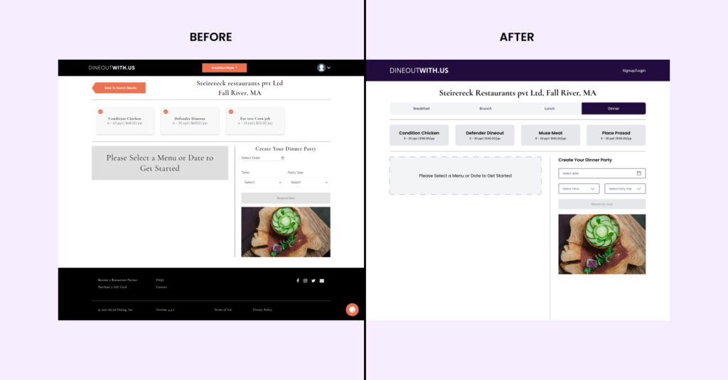 We streamlined the reservation process, making it quicker and more intuitive for diners to select their preferences, such as date, time, and party size.
