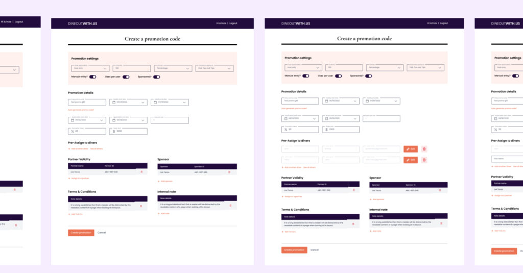 In this project, we made big changes to the Promotion Page, a really important part of dineoutwith.us. This page is where admins set up and start promotions. The goal was to make it easier to use and also add a step where promotions get checked before they’re allowed, to make sure they fit with dineoutwith.us’s plans.